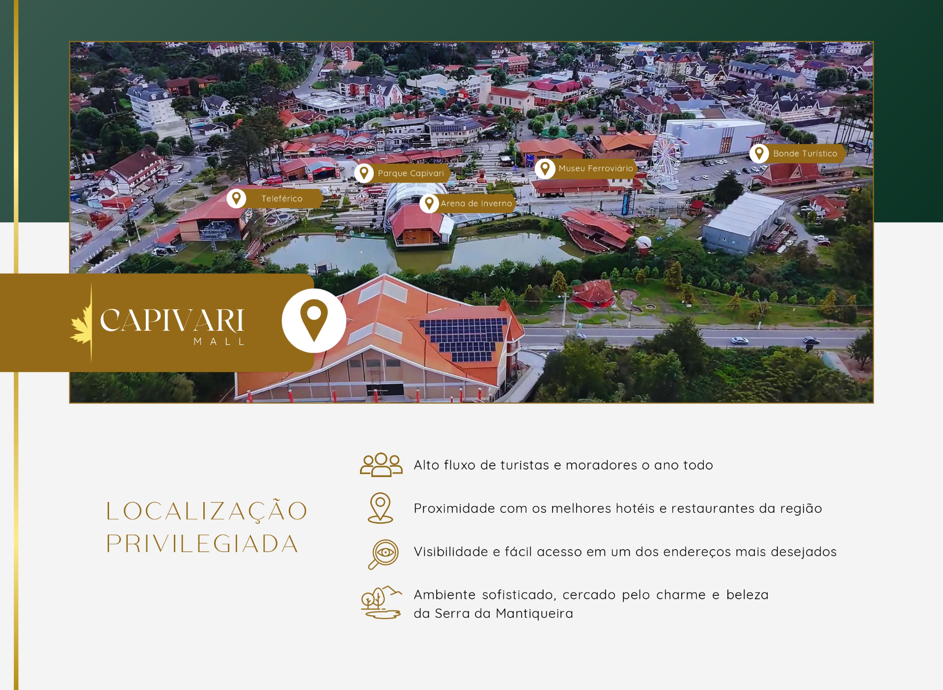 Capivari Mall será o mais novo e exclusivo centro comercial de Campos do Jordão, localizado no coração do charmoso bairro de Capivari. Com uma arquitetura sofisticada e uma estrutura moderna, o empreendimento será um marco na cidade, reunindo as melhores marcas, gastronomia refinada e experiências únicas de lazer e entretenimento.